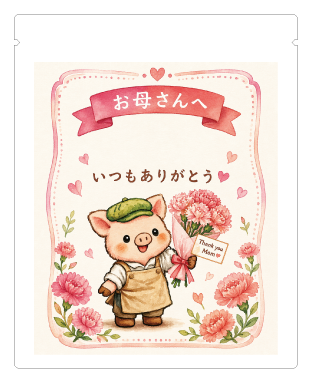 お母さんへ感謝のカーネーションを届ける限定デザインのドリップバッグです。